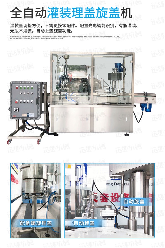 4、具有無(wú)瓶不灌裝、自動(dòng)進(jìn)瓶出瓶、自動(dòng)定位灌裝、自動(dòng)控制液位等功能,自動(dòng)化程度高;該全自動(dòng)酒精消毒液灌裝機(jī)灌裝嘴設(shè)計(jì)科學(xué)合理,配防滴漏裝置,灌裝不滴漏,擁有物料瓶及設(shè)備的干凈衛(wèi)生。
