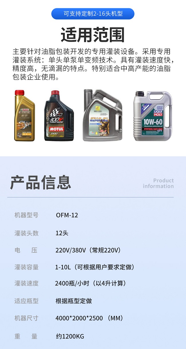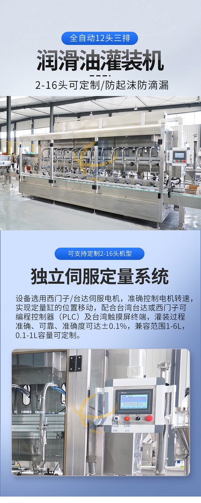 這款全自動十二頭三排潤滑油灌裝機(jī)是本公司專為潤滑油廠家研發(fā)的自動化設(shè)備,這款潤滑油灌裝機(jī)2-16頭可定制,防起沫防滴漏。主要針對油脂包裝開發(fā)的專用灌裝設(shè)備。采用專用灌裝系統(tǒng):單頭單泵單變頻技術(shù)。具有灌裝速度快,精度高,無滴漏的特點(diǎn)。特別適合中高產(chǎn)能的油脂包裝企業(yè)使用。