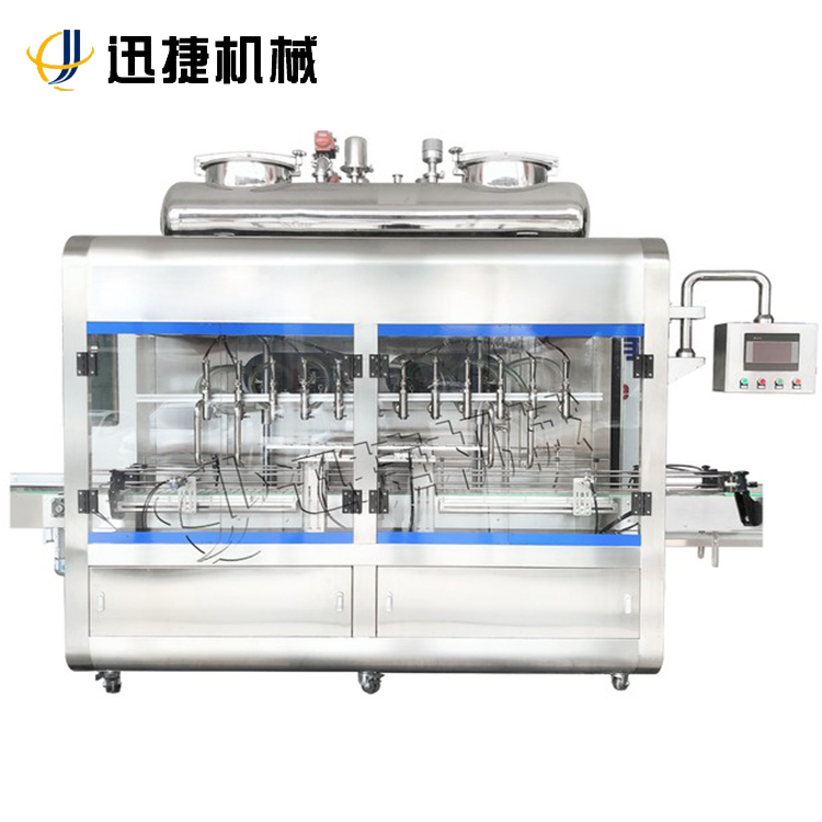 豆瓣醬灌裝機(jī)灌裝轉(zhuǎn)閥可以根據(jù)客戶物料定做加大,以適應(yīng)不同客戶物料的灌裝需求。 配備臥式攪拌料斗,雙螺旋正反轉(zhuǎn)攪拌,攪拌時(shí)間可以自由設(shè)定,保障在灌裝過程中物料均勻、無油醬分離,確保每一瓶的灌裝精確度。 該設(shè)備在設(shè)計(jì)上大大縮短了下料斗到灌裝頭的灌裝距離,克服了含油量大的物料(如:含芝麻粒的辣椒油)在灌裝過程中出現(xiàn)的有些瓶油多,有些瓶醬多的灌裝誤差大的缺點(diǎn)。