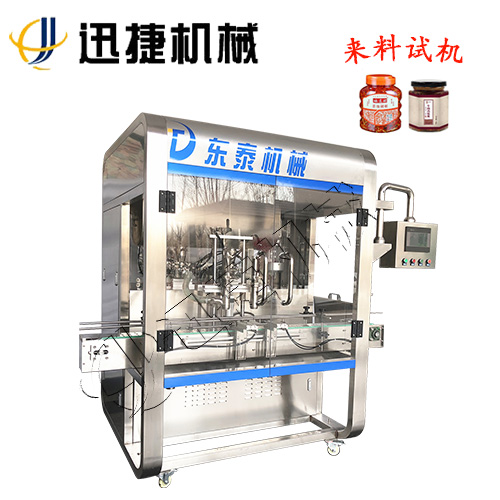 因XO醬里面都是含有肉塊的,像是香菇牛肉醬,里面的牛肉塊和香菇塊一般顆粒都比較大,普通的醬料灌裝機(jī)根本不能灌裝,這可怎么辦呢?要是光用人工,人工費昂貴不說,衛(wèi)生條件更是不好控制。在此背景下,我們迅捷機(jī)械設(shè)計并生產(chǎn)了全新的XO醬灌裝機(jī)。