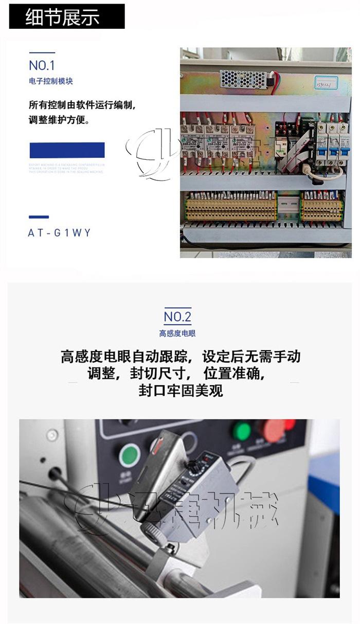 E、色標(biāo)檢測(cè)器,使色標(biāo)檢測(cè)更為準(zhǔn)確網(wǎng)紋、直紋、豎紋式封口任選。
